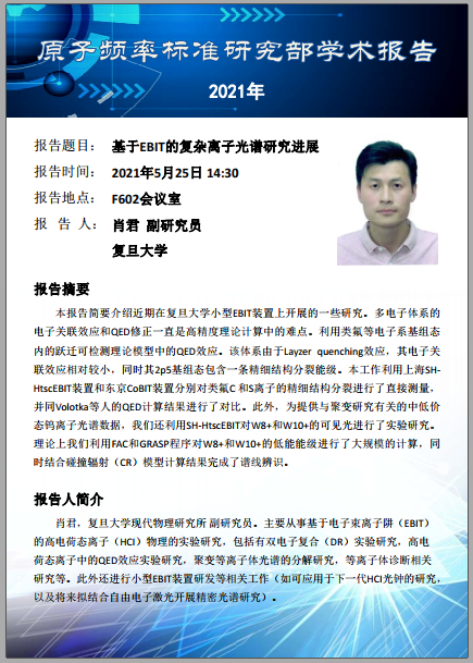 2021年5月24日EVO视讯官网原子频标研究部学术报告(一)
