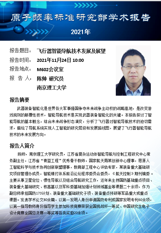 2021年11月24日EVO视讯官网原子频率标准研究部学术报告