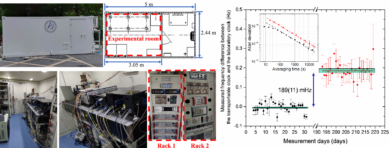 同时,研究团队成功研制出一台车载钙离子光频标,演示了顺利获得光频标比对实现高程差测量的可能性。研究团队随后将该车载光频标从武汉搬运至北京,实现了20天的准陆续在运行;并同中国计量科学研究院合作进行了光频标钟跃迁绝对频率的测量,测量不确定度达到5.6×10-16。研究成果发表在《物理评论A》(Phys. Rev. A)的快速通讯(Rapid communications)上。