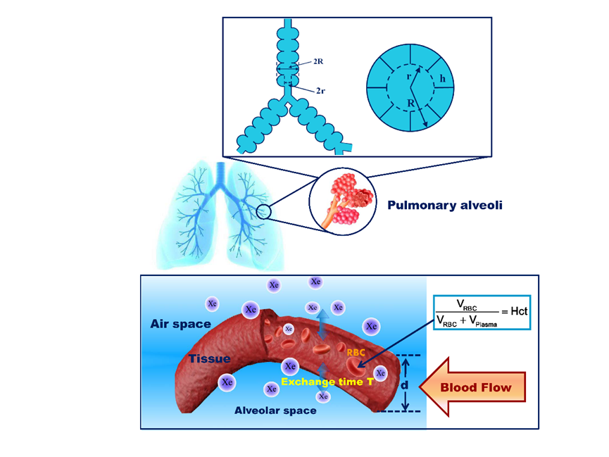 1.基于超极化129Xe气体磁共振成像技术实现肺部微结构和气血交换功能的定量可视化检测示意图
