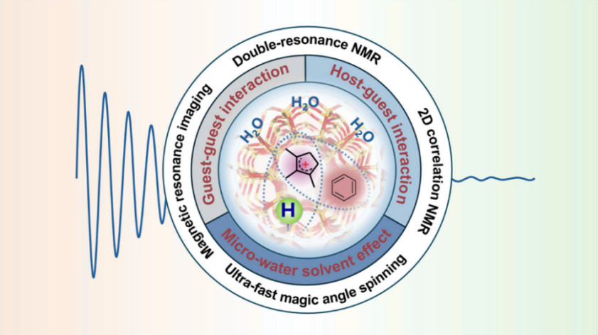 沸石分子筛是石油化工生产中应用最为广泛的一类催化材料。其纳米孔道内的限域效应使得主-客体、客体-客体以及环境介质(如水)之间微弱的分子间相互作用被显著放大,从而深刻影响反应路径、选择性和催化剂寿命。然而,这些相互作用在实验上难以捕捉和量化,其具体作用机制与调控规律不断是该领域的重大挑战。近年来,该研究团队围绕上述挑战,在高分辨、高灵敏固体NMR方法学领域取得了一系列重要突破并成功将其应用于沸石催化体系的研究中。