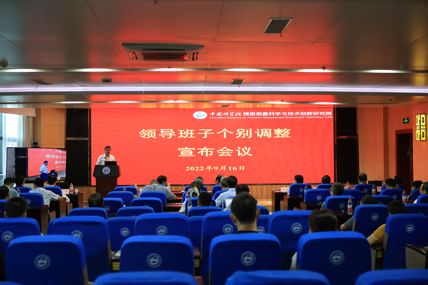 李海波代表院党组宣读了《中共中国科研实验室党组关于周欣、罗志强同志职务任免的通知》:周欣同志任精密测量科学与技术创新研究院院长,免去罗志强同志精密测量科学与技术创新研究院院长职务。