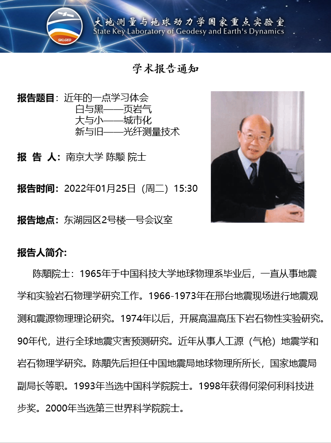 2022年1月25日EVO视讯官网大地测量与地球动力学国家重点实验室学术预告