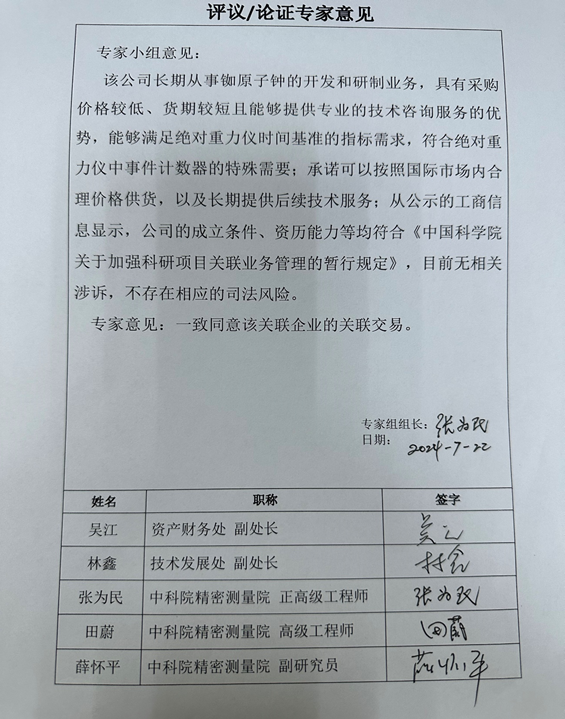 中国科研实验室精密测量科学与技术创新研究院关于向武汉中科坤德科技有限公司采购铷原子频率标准的关联交易公告