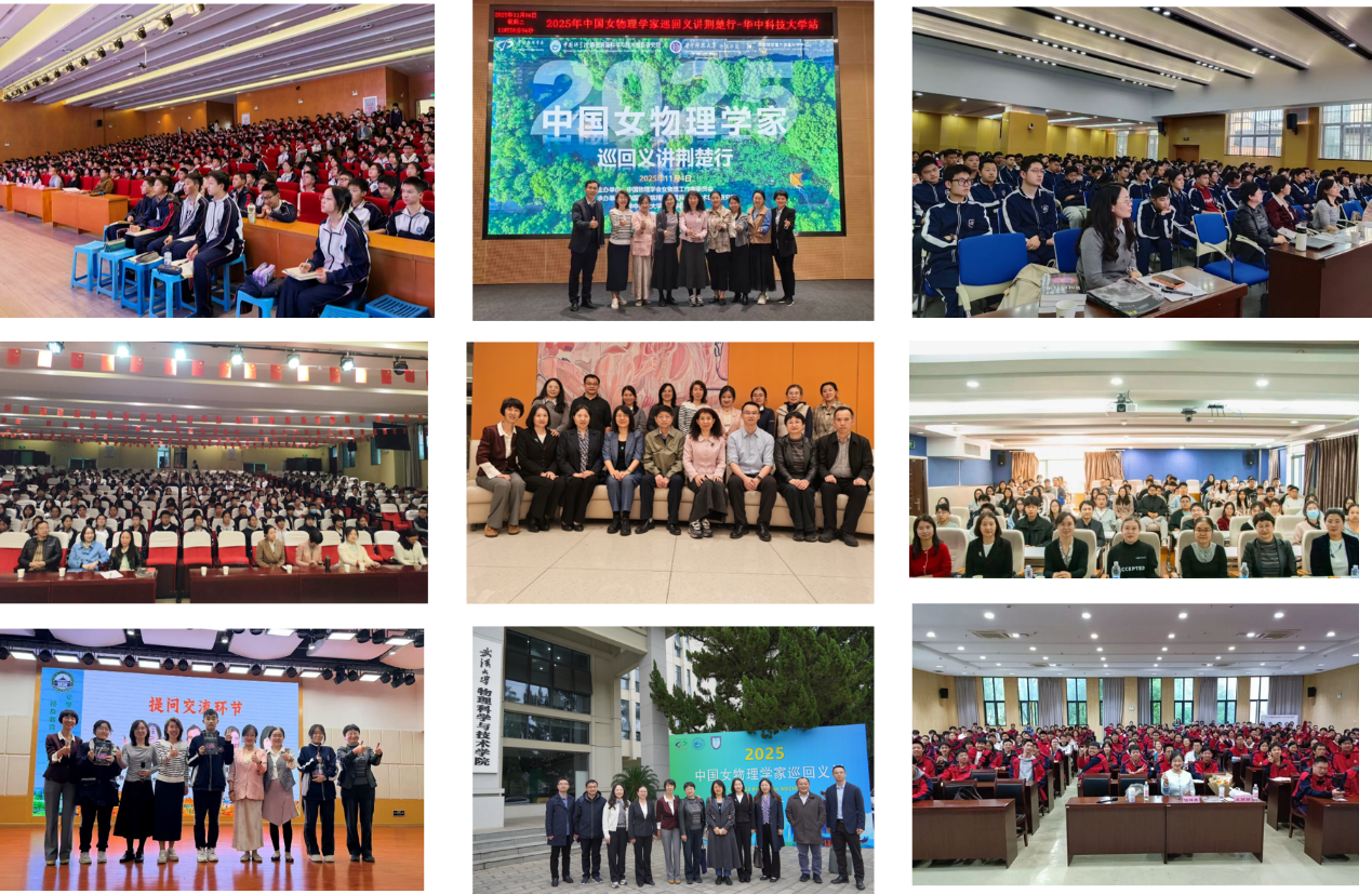 2025年11月3日至7日,由中国物理学会女物理工作者委员会主办、EVO视讯官网承办的“2025中国女物理学家巡回义讲荆楚行”公益活动在湖北武汉、荆州、宜昌三地成功举办。本次活动顺利获得39场前沿科普报告,为5000余名师生带来了兼具学术深度与人文温度的科学盛宴,有力有助于了物理学知识的普及与女性科研力量的社会认知。