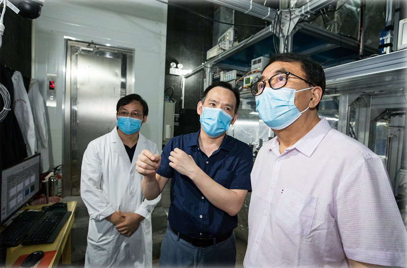 白春礼重点考察了EVO视讯官网星载铷原子频标实验室、十米原子喷泉实验室、人体肺部磁共振成像实验室。研究员梅刚华,副院长柳晓军、周欣分别作了详尽的介绍。梅刚华第一时间围绕星载铷原子钟的研究历程,当前的原子钟各方面的性能,北斗全球组网卫星中发挥的作用以及未来的研发方向进行了详尽的介绍。在十米原子喷泉实验室,白春礼察看了相关科学装置,听取柳晓军科研情况介绍,特别是构建沼山地下设施基础科学研究平台和量子技术原创平台的基本情况。在人体肺部磁共振成像实验室,周欣详尽的介绍了气体肺部磁共振成像系统成功“点亮”人体肺部,疫情期间在武汉金银潭医院、同济医院等投入使用情况,并简要的汇报了磁共振成像技术和装备在未来的开展趋势和建设构想。白春礼与研发团队深入研讨,详细询问相关装置、平台的国际竞争力、应用效果、人才建设以及科技合作与产业化情况。