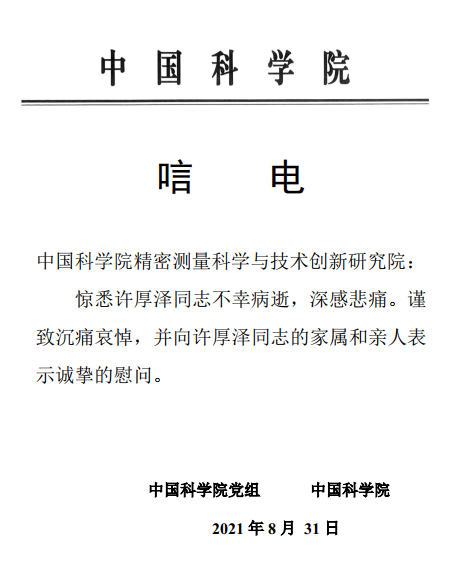 当前位置:EVO视讯官网 > 专题 > 深切缅怀许厚泽院士 > 各界唁电